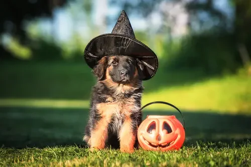 While candy is off-limits for dogs, that does not mean your puppy has to miss out on the fun. Put together a basket of puppy-safe treats and toys that your dog can enjoy on Halloween night. A chew toy, soft squeaker, or pumpkin-flavored dog biscuit makes the evening feel special for your pet.